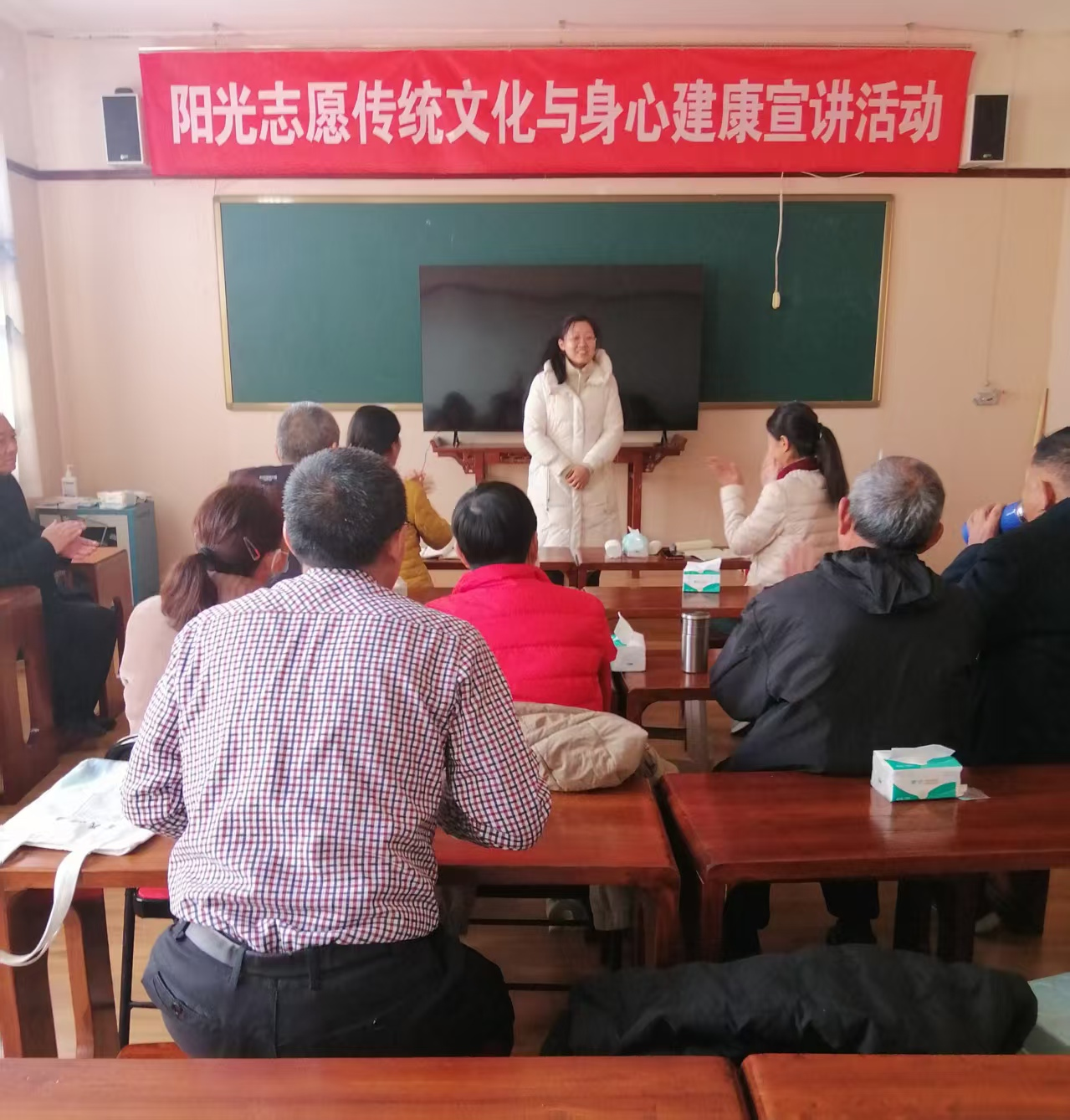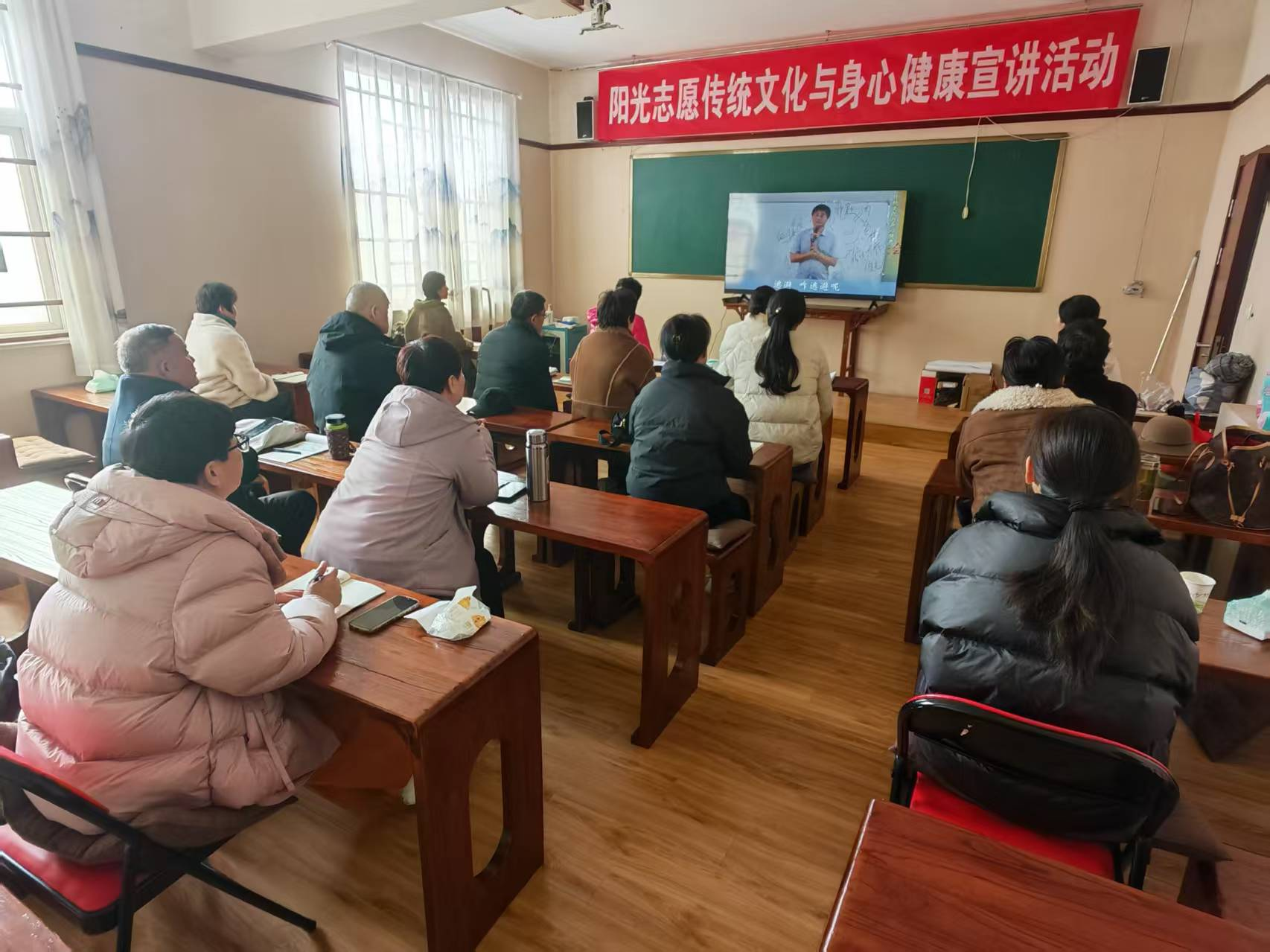 参与者们坐在讲堂上,伴随清晰的画面与专业的讲解,沉浸式走进高血压的健康课堂。屏幕上,生动的讲解将复杂的医学原理转化为通俗易懂的生活常识,从血压的基本概念到高血压的诱因解析,从日常饮食的盐量控制到运动锻炼的科学方法,每一个知识点都通过直观的视频语言传递。