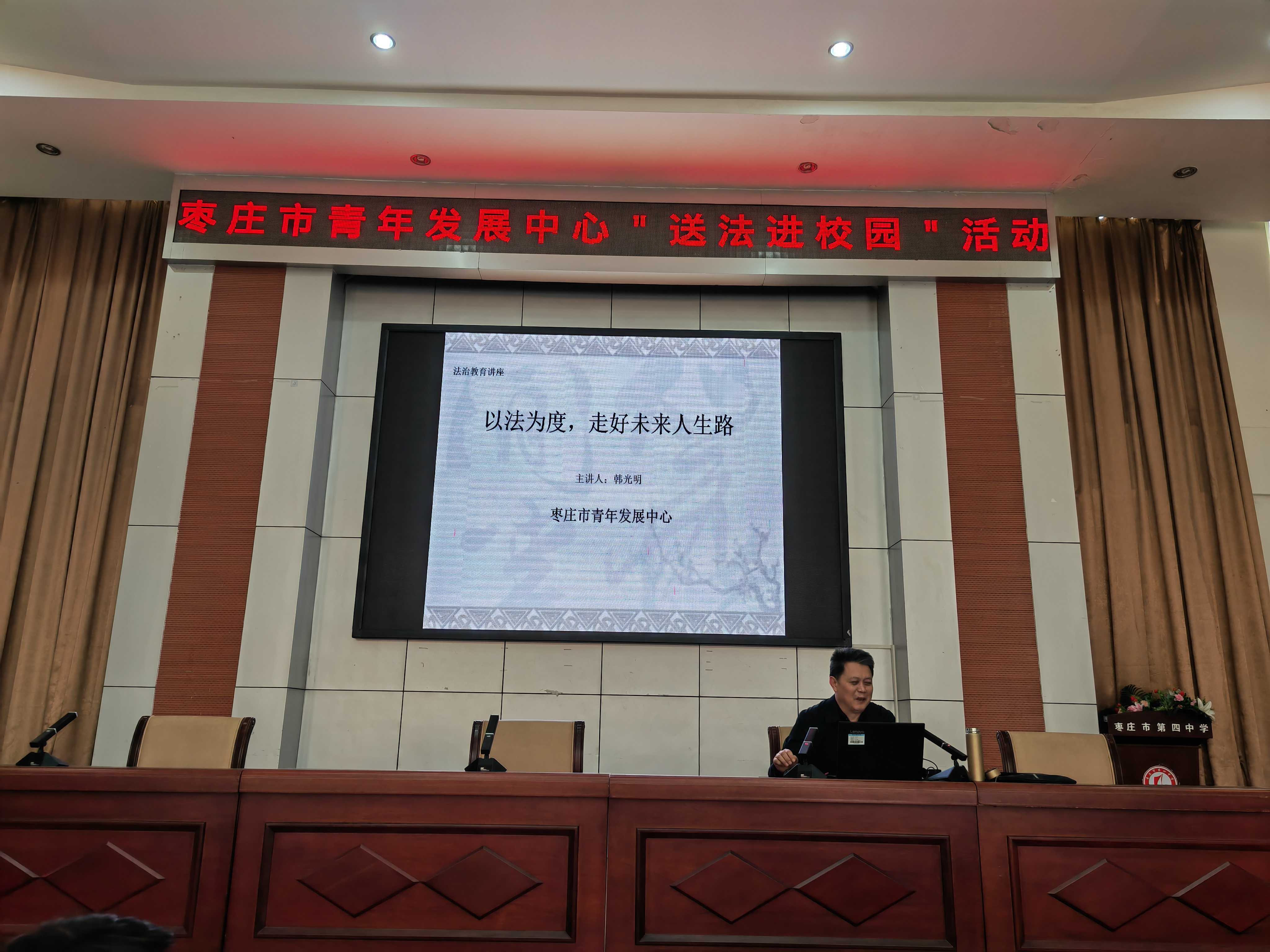 、3月21日,枣庄市青年发展中心联合枣庄市心理咨询与治疗协会走进枣庄市第四中学,开展“枣心成长,青春护航”预防未成年人犯罪和心理健康教育进校园活动。800多名学生参加了本次活动。