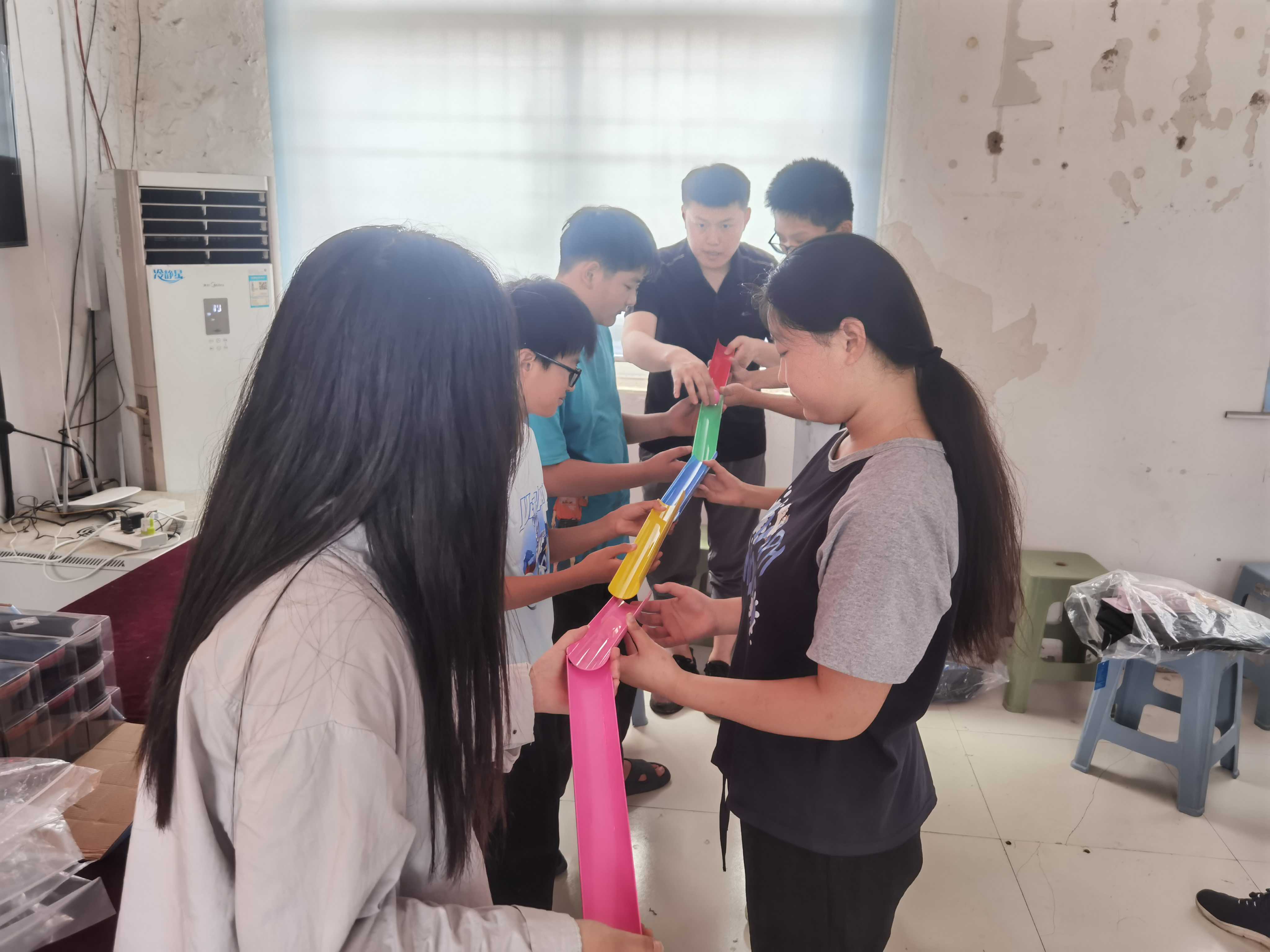 首先中心拓展志愿者带领留守困境青少年学生进行了“不倒深林”、能量传输等拓展训练,孩子们在老师的带领下,热情高涨、气氛活跃,认真完成了每一个项目任务,加强了他们沟通交流与团结合作能力,训练取得良好的效果。