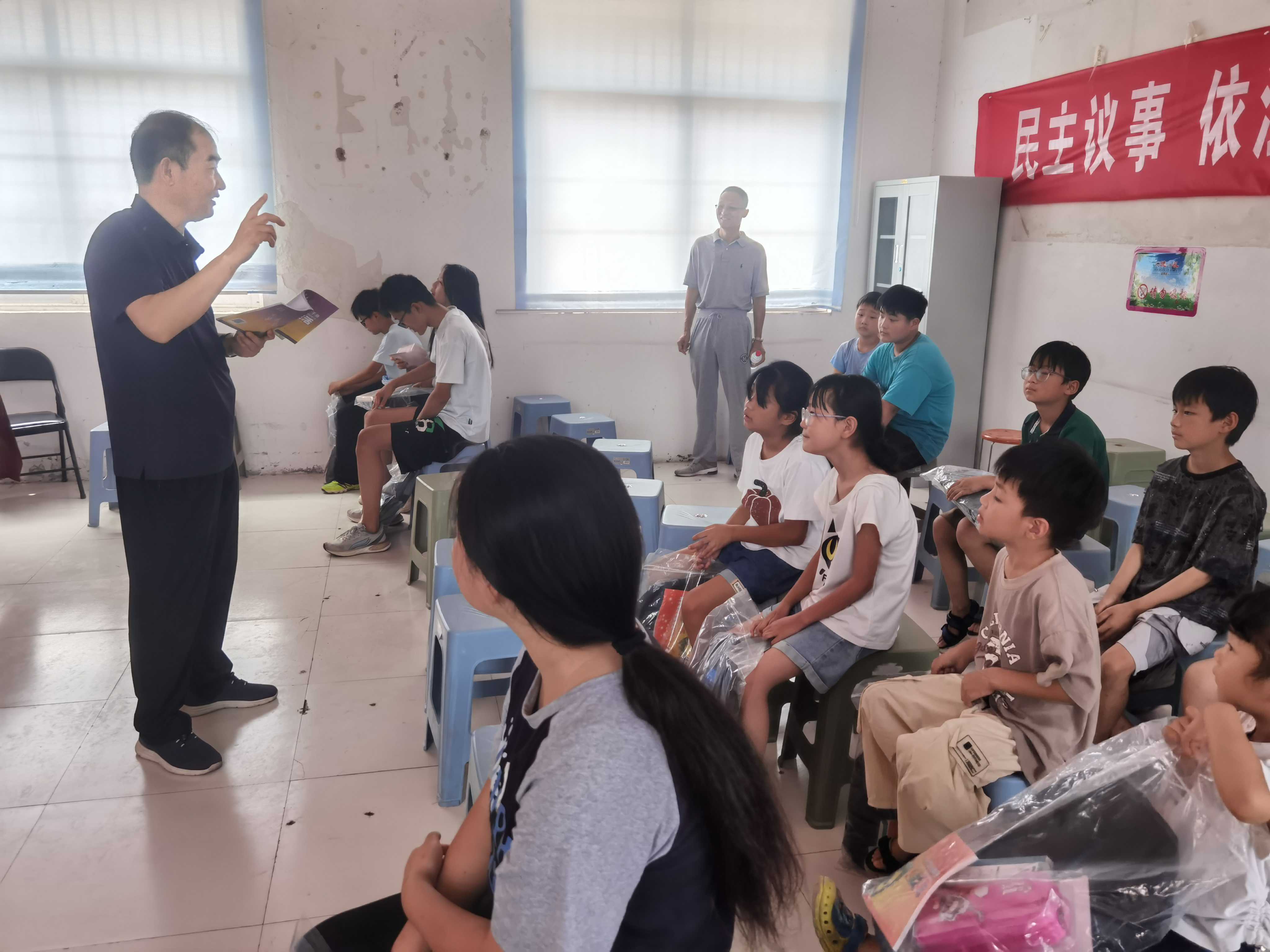 、为做好留守困境儿童关心关爱工作,进一步推动文明实践志愿服务活动与未成年人思想道德建设工作有机融合,8月8日上午,中心党员志愿者,冒着酷暑深入滕州市鲍沟镇薛中村开展“助力乡村发展 关爱留守困境少年儿童”志愿公益行活动,30名留守困境儿童参加了本次活动。