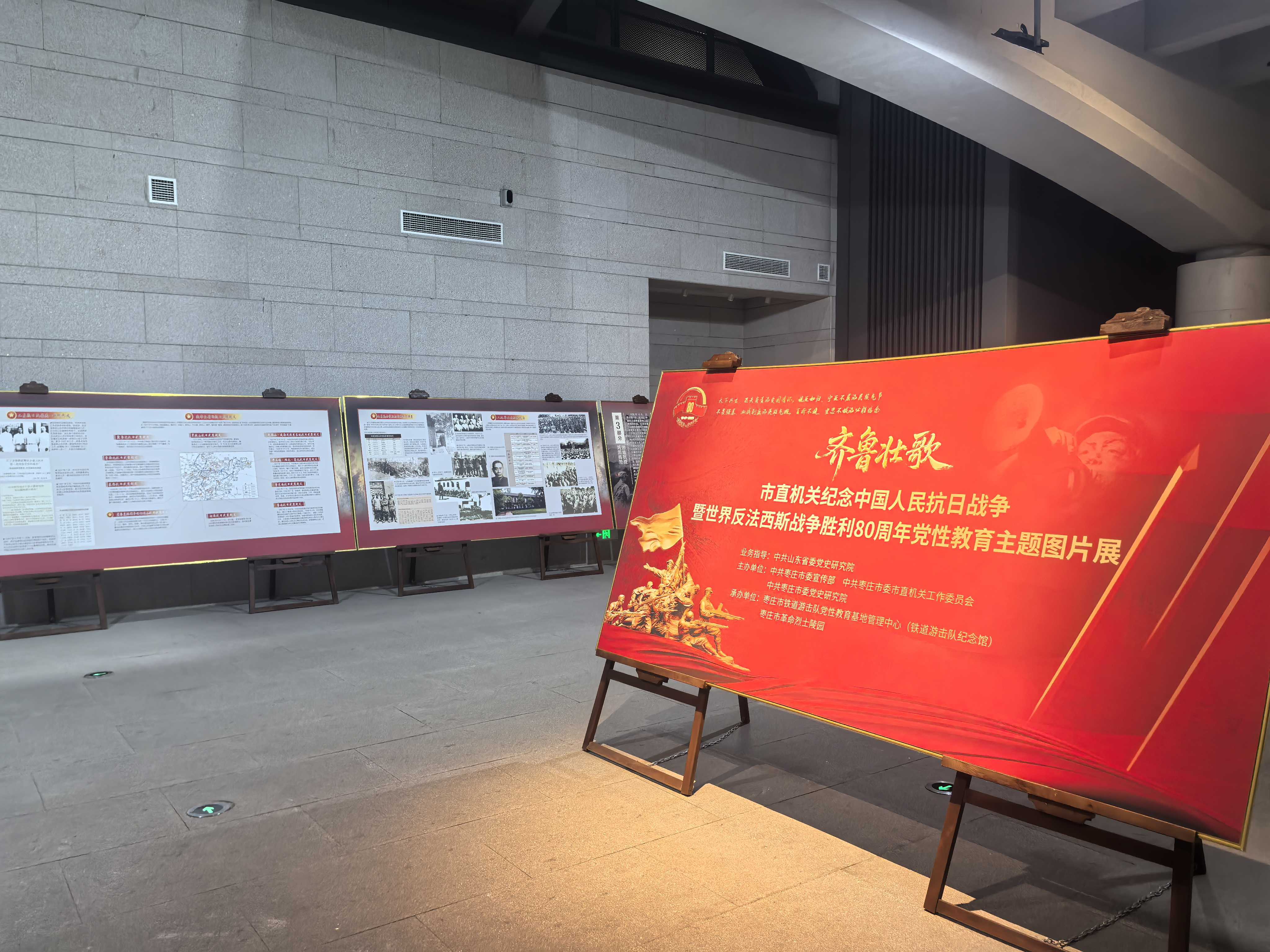、为纪念中国人民抗日战争暨世界反法西斯战争胜利80周年,弘扬伟大爱国主义精神和伟大抗战精神,从中汲取奋进新时代的磅礴力量,8月28日,枣庄市青年发展中心结合“抓落实、提质效”主题党日活动,组织全体党员到铁道游击队纪念馆参观由中共枣庄市委宣传部、市委市直机关工委和市委党史研究院联合主办的“市直机关纪念中国人民抗日战争暨世界反法西斯战争胜利80周年党性教育主题图片展”。